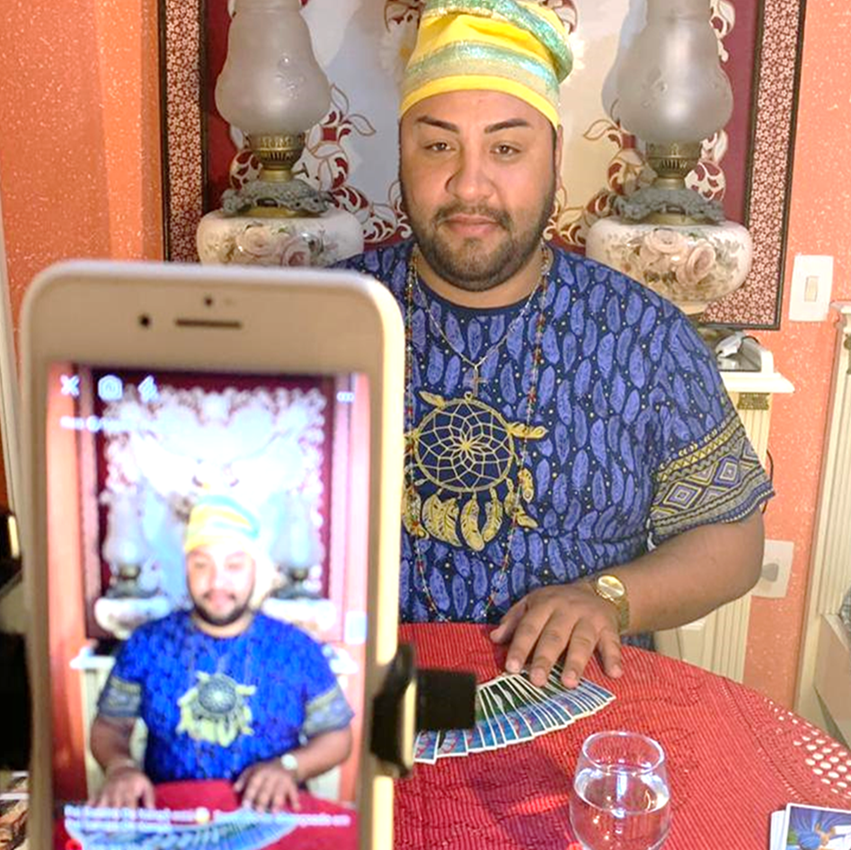 Pai Sandro de Xangô realiza consultas espirituais com Baralho Cigano, Búzios dos Orixás, ou até mesmo incorporado com sua entidade Pomba Gira Maria Mulambo, por vídeo chamada no Whatsapp.